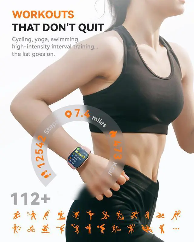 110 Sports Modes & All-Round Fitness MonitoringThis smartwatch suitable for both women and men, boasts a 1.85 inch HD display that delivers sharp, clear visuals. It comes equipped with 110 sports modes to keep track of a wide range of activities like walking, running, cycling, and climbing. Additionally, it integrates fitness tracker and sleep monitor, allowing you to gain a comprehensive insight into your health status. (Note: Generally, the step count on the watch will be synchronized and shown only after 15 steps have been taken.)