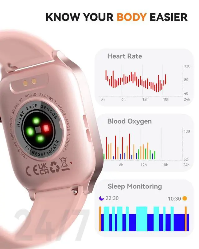 24/7 Activity TrackingThis fitness tracker logs your steps, distance, calories burned, and rest patterns. Sync the data to check your daily progress and access personalized activity insights via the accompanying app.