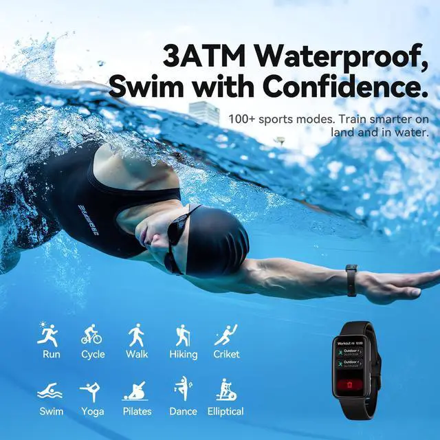 100+ Exercise Modes & 3ATM Waterproof: The Enfit Fitness Trackers offers 100+ workout modes, including running, swimming, and yoga, while accurately tracking calories, steps, distance, and duration. With 3ATM waterproofing, its perfect for swimmerswear it while washing hands, showering, swimming, diving, or even in the rain without worry.