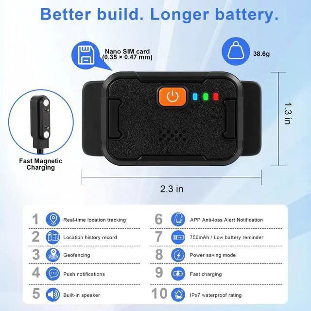 IPX7 WATERPROOF & RUGGED DESIGN: Built to withstand your dog's wildest adventures. Featuring a certified IPX7 waterproof rating and extreme temperature resistance (-30°C to 70°C / -22°F to 158°F), this durable tracker is perfect for year-round usecompletely safe for swimming in lakes, rolling in the mud, and heavy rain.