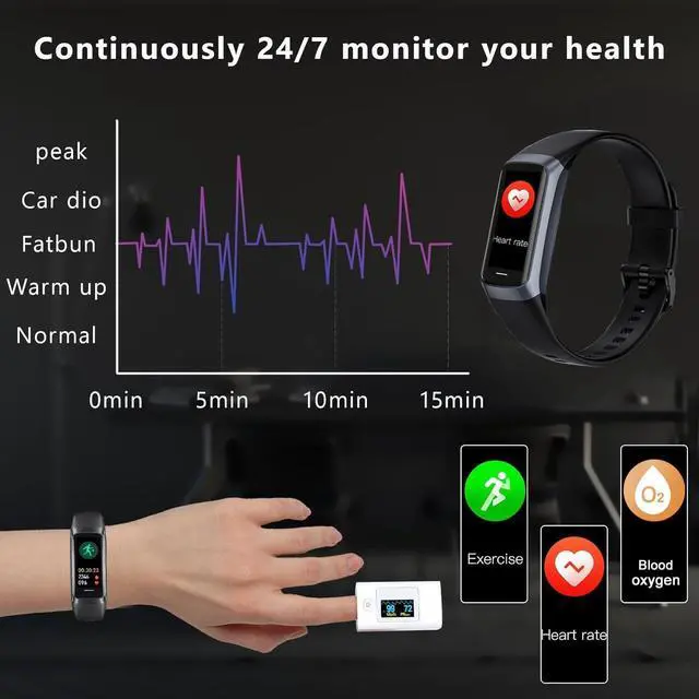 1. 24H Health MonitoringFitness Tracker With the function of monitoring heart rate and blood oxygen, you can track your health data 24/7 and help adjust your overall condition.The sleep tracker also analyzes your sleep quality, tracks your deep sleep, light sleep, and awake periods, rates your sleep quality, and helps you adjust your sleep habits.