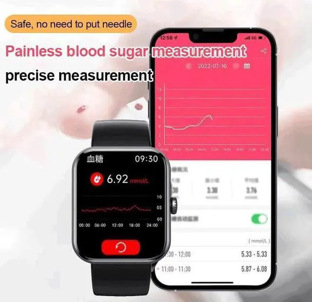 More than just counting steps--Smartwatch is a life assistant. Many valuable functions include blood oxygen, blood pressure, blood sugar, body temperature test, step counting, distance, calories, heart rate, sleep monitoring music playing, stopwatch,countdown, calculator, weather display, remote photography etc.