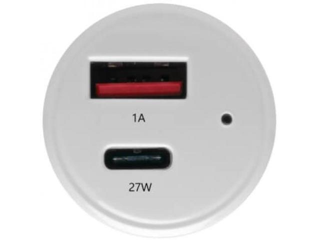 DUAL-PORT USB CAR CHARGER WITH PD CHARGING - USB TYPE C (27W) & USB TYPE A (5V 1