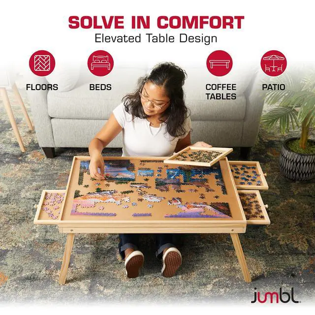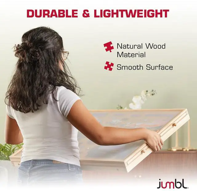 Love working on big jigsaw puzzles, but hate the messy look of pieces spread across the table? With this premium Puzzle Board with foldable legs from Jumbl, you finally have a dedicated workspace designed for assembling, sorting, organizing, and storing puzzles between play sessions. Perfect for children, adults, and seniors, the smooth natural wood surface delivers the quality and durability puzzle enthusiasts deserve.