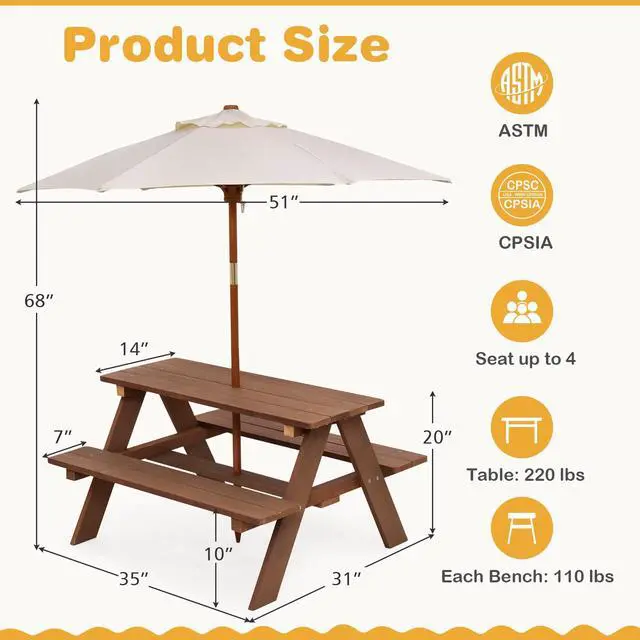 Absolutely delighted with our kids' picnic table! It's sturdy, easy to clean, and the perfect size for little ones. The vibrant colors and design have made outdoor dining a delightful experience. Highly recommended for any family looking to add a touch of fun to their backyard.