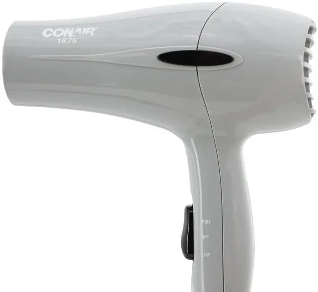 Pure styling joy, no complications - the Conair Mid-Size Dryer makes looking amazing refreshingly simple. This lightweight dryer packs 1875 watts of drying power into a compact design that won't weigh you down. Perfect for everyday styling, it features 2 heat/speed settings that work beautifully on all hair types. Choose low for delicate or thin hair or high for average to thick hair that needs more power. The ergonomic handle makes styling comfortable from start to finish so you can focus on creating your perfect look. Compact enough to tuck in a gym bag or suitcase yet powerful enough for daily use, this dryer proves that great style doesn't need to be complicated.