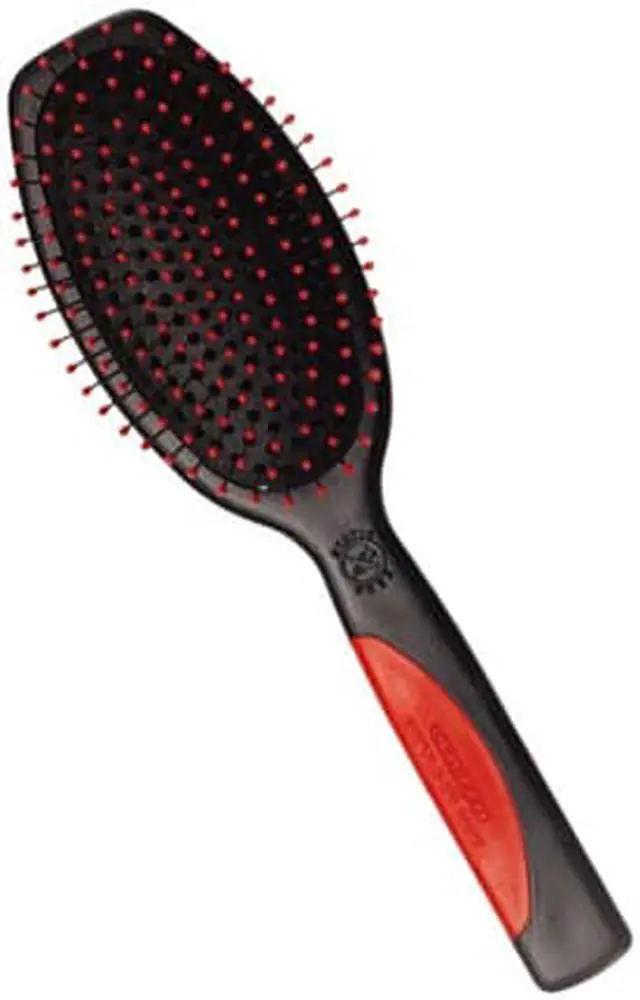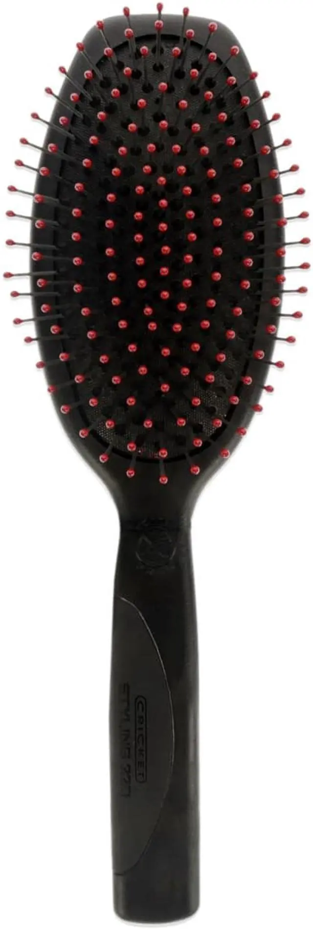 There is no doubt about it, static in your hair is just annoying. Cricket's Static Free Styling Brush guarantees a great hairstyle without static. A cushioned pad to increase hair brushing comfort. Metal bristles penetrate the hair to absorb more moisture. Reinforced stay put ball tips and a rubber non slip handle for easier glide and control through the hair. The ideal styling brush for heavy, thick or curly hair.