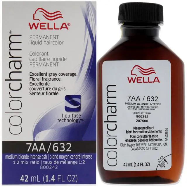 Wella Color Charm Liquid Permanent Hair Color with Liquifuse technology to ensure consistent, predictable results. Vibrant, long lasting, fade resistant results. Excellent gray coverage. Wella colorcharm Permanent Liquid Color saturates and fuses with the hair to deliver a TRUE-TO-TONE color that is exceptionally fade resistant. Liquid Color provides a vibrant palette without boundaries with 62 easily intermixable shades to express your creativity.