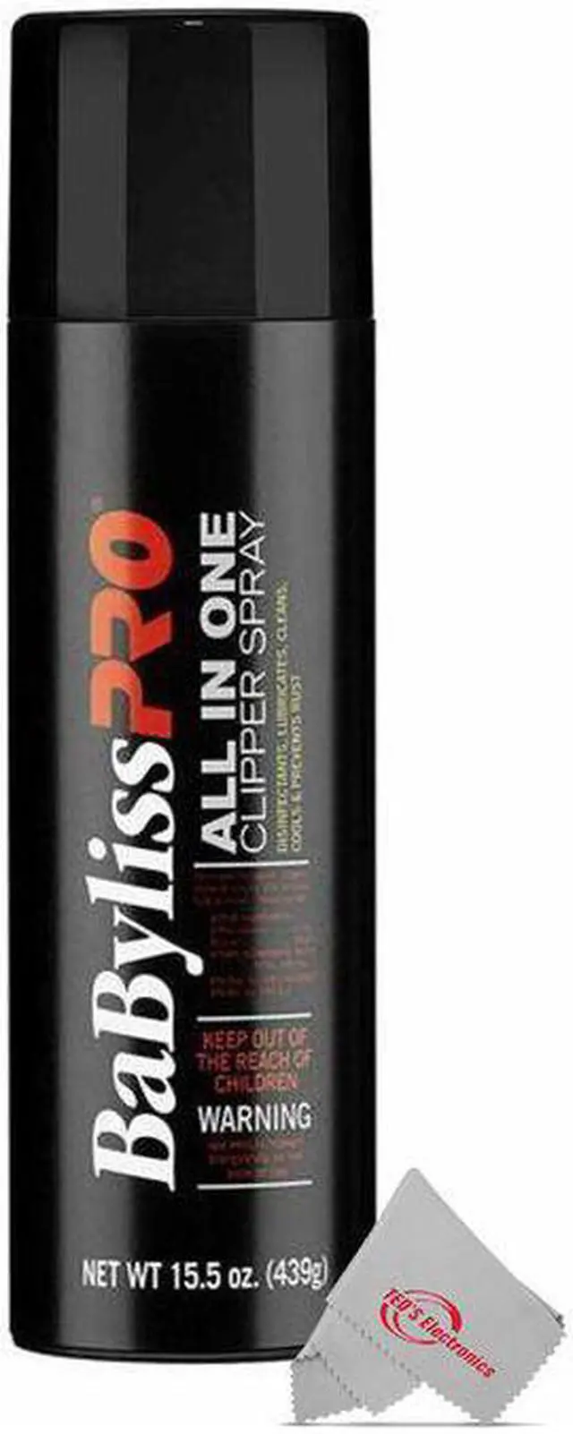 BaBylissPROKEY_TAB All in One Clipper Spray gives you the benefit of 5 different products in a large, 15.5 oz. aerosol can. Apply to clippers, trimmers, and shears before, during, or after use.