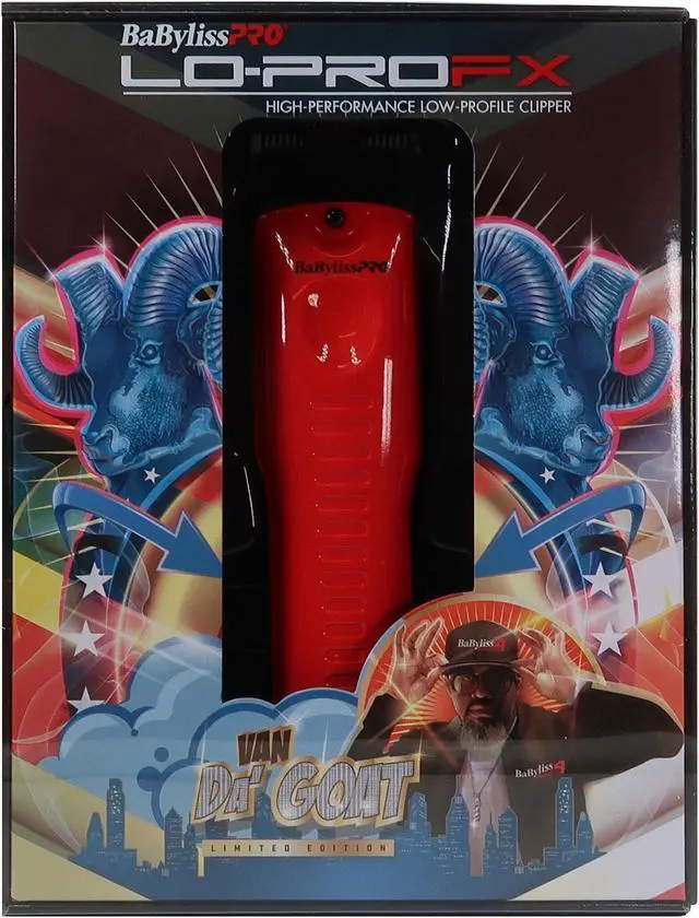 This kit from Teds Electronics includes: - BaByliss Pro Limited Edition LO-PRO FX Cordless Clipper (Van Da' Goat) #FX825RI
