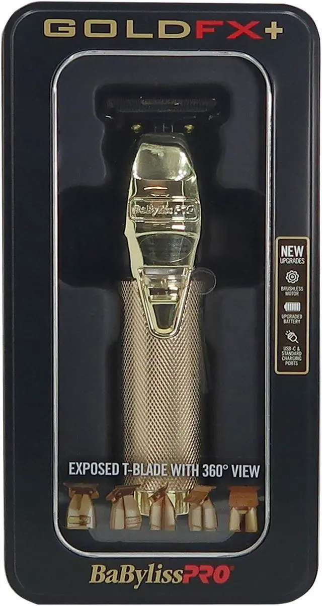 The BaByliss Pro GOLDFX+ Outlining Hair Trimmer is a professional, all metal, cord/cordless lithium outlining hair trimmer. Featuring an exposed T-blade with 360-degree views & upgraded N1 brushless motor with dual ball bearings for efficiency