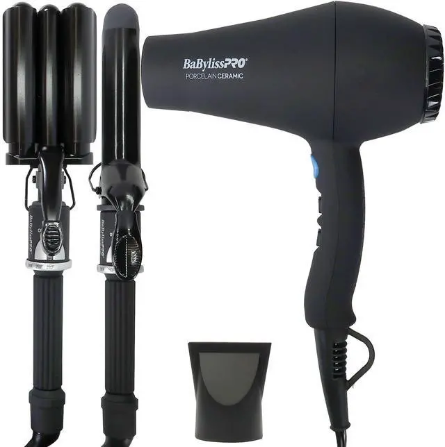 BaByliss Pro LIMITED EDITION Porcelain Ceramic Holiday Prepack #BPPP7-24This exclusive set includes the Carrera2 Dryer, which combines ionic and porcelain ceramic technology to deliver 1900 watts of gentle, infrared heat that protects hair from damage while locking in moisture. With six heat and speed settings, plus a cold shot button and concentrator nozzle, this dryer provides precise styling control. The triple barrel waver in this set features three-barrel sizes 1", ¾", and 1" perfect for creating effortless, natural-looking waves, while heat settings up to 430°F ensure effectiveness on all hair types. Rounding out the set, the 1¼spring curling iron uses porcelain ceramic barrel technology to evenly distribute heat, helping to create smooth, shiny curls that last.