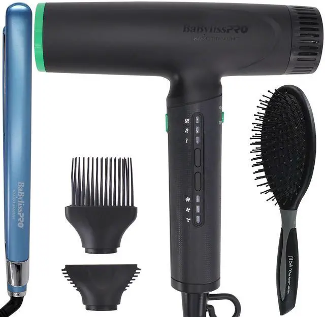 BABYLISS PRO NANO TITANIUM LIMITED EDITION PROFESSIONAL NANO LIGHT IONIC HAIR DRYER (TOMB45 COLLECTION) + BABYLISS PRO NANO TITANIUM 1" ULTRA-SLEEK HAIR STRAIGHTENER, FLAT IRON + CONAIR PRO ERGO-GRIP DETANGLER BRUSH