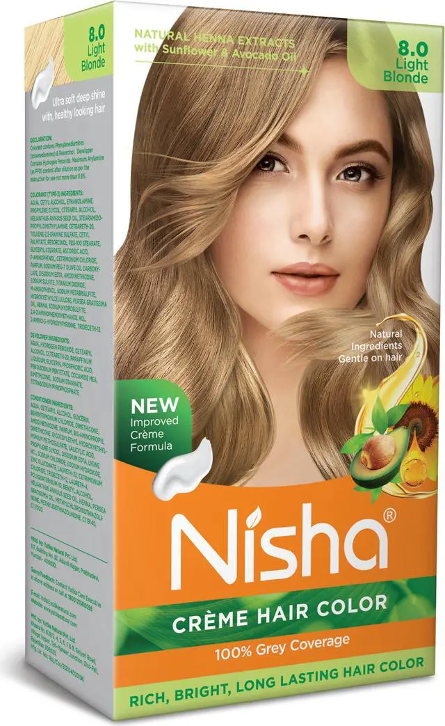 Nisha Cream Hair Color Rich Bright Long Lasting Hair Colouring For Ultra Soft Deep Shine 100% Grey Coverage Conditioning With Natural Herbs 150gm Light Blonde (Pack of 1)