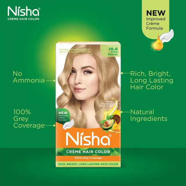 Nisha Cream Hair Color Rich Bright Long Lasting Hair Colouring For Ultra Soft Deep Shine 100% Grey Coverage Conditioning With Natural Herbs 150gm Ultra Blonde (Pack of 1)