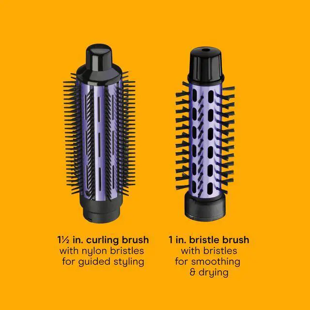 GET YOUR WAVE ON: The Conair 2-in-1 Hot Air Styler Blow Dryer Brush Set includes a 1-inch aluminum barrel brush with nylon bristles for defined curls and a 1.5-inch brush for larger, voluminous curls.