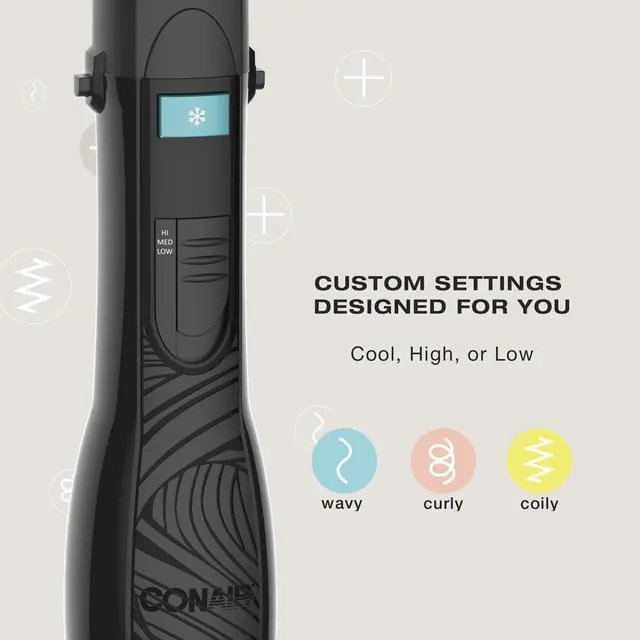 Styling Control: 2 heat settings plus cool setting. This drying brush is perfect for wavy, curly, or coily hair types and has 1000 watts of power, quickly styles damp hair or refreshes your hair between washes after applying your favorite dry shampoo.