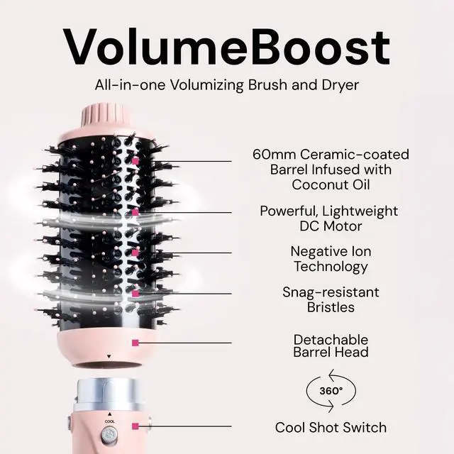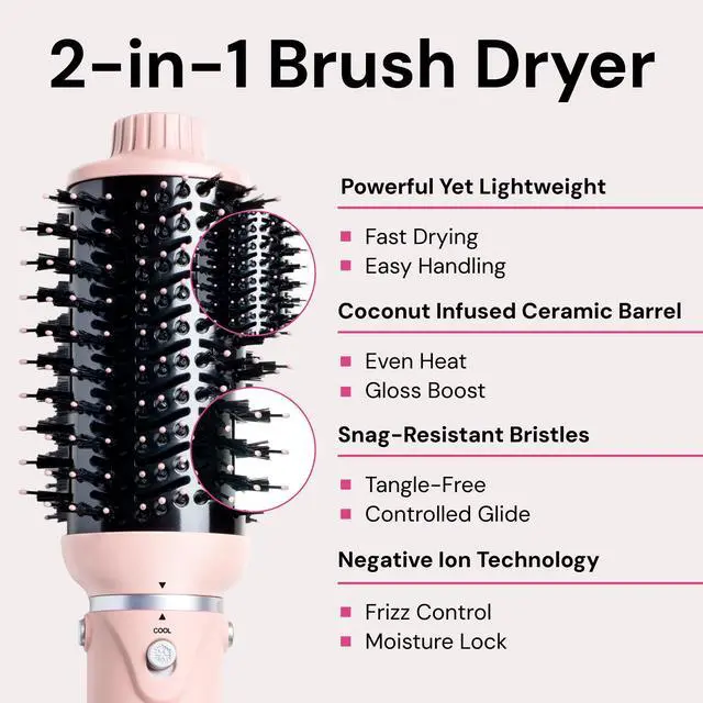 BOUNCY, VOLUMINOUS BLOWOUTS - Two heat settings and a cool shot switch give you salon-worthy results, while the snag-resistant bristles offer an effortless glide for a bouncy finish.