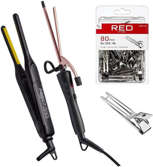 3 Pcs Styling Set, 0.3 Ceramic Tourmaline Pencil Flat Iron, 1/4 Extra Small Curling Iron, 80pcs Slide-in Hair Clips, for Edges, Tight Curls, Twist Styles & Frizz Control On Short Hair