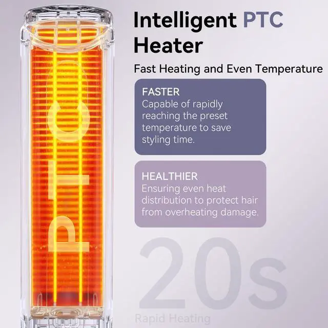 Intelligent PTC Heating for Healthy Hair - Features advanced PTC heater technology that heats up in just 20 seconds and distributes heat evenly. This prevents hot spots and overheating damage, locking in moisture and shine for less frizz and healthier-looking hair.