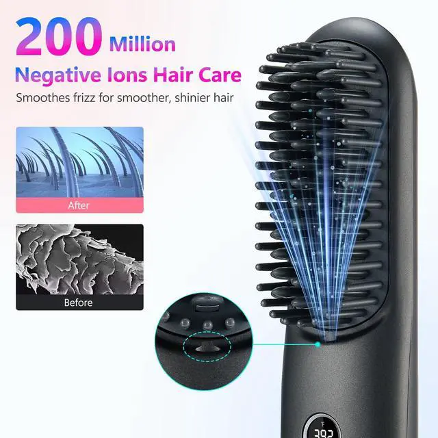 Portable Cordless hair straightener brush great for travel, work, or on-the-go