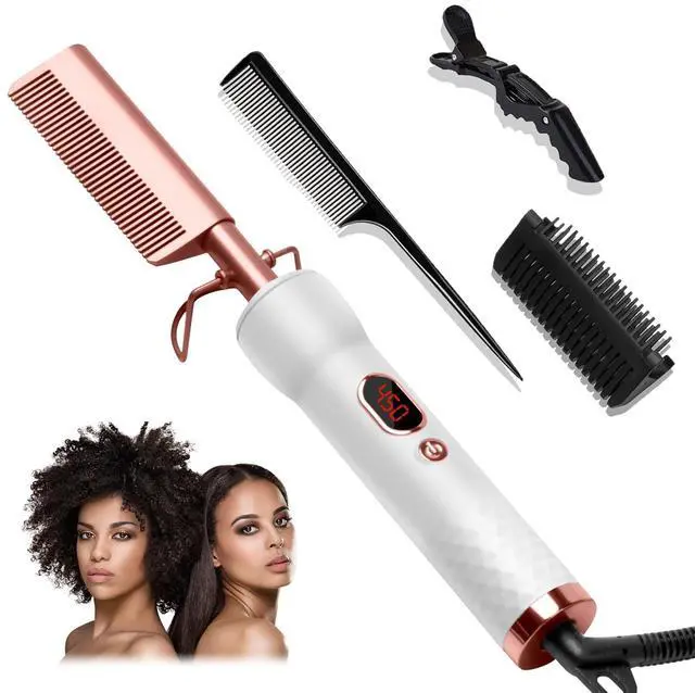 Ceramic Technology Hot Comb for Wigs Human Hair:This hair hot comb straightener is made of ceramic technology with a metal surface to dissipate heat evenly and reduce damage to hair during styling without damaging it.