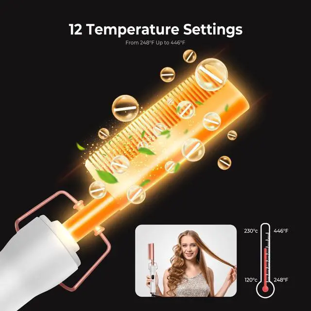 Hot Comb with 12 Temps Settings:The electric hot comb has LCD display for precise temperature control. The straightening comb has 12 temperature settings for different hair types: 250°F-300°F for soft hair, 320°F-375°F for normal hair, 395°F-445°F for coarse hair. In addition, this hair pressing comb is also suitable for straightening hair/beard/wig.The smooth hair can greatly enhance your personal charm.