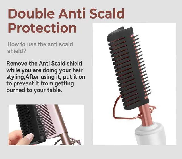 Hot Comb Straightener with Double Voltage(110-240V) :The electric hot comb is 110 volts to 220 volts dual voltage, perfect for your next trip around the world.The mini hot comb handle has a strong grip, ultra-light and compact, it won't strain your wrist even if you use it continuously for several minutes, portable and easy to use. The hot comb for wigs human hair can be used for parties, dating, traveling, home and salon.