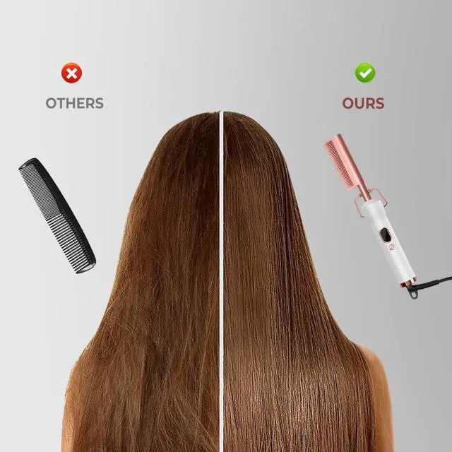4X LESS Damage: The hot comb for wigs human hair uses argan oil, keratin and tourmaline to infiltrate the teeth of the comb. The hot comb electric has a nourishing effect and releases millions of negative ions when heated, which reduces damage to the hair during the styling process and does not damage the hair texture; after combing with this straighten comb for many times, the hair is shiny, soft, silky and straight.