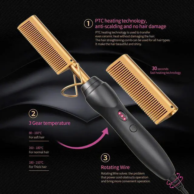 Titanium alloy: Plug in hot comb is lightweight and convenient to take;