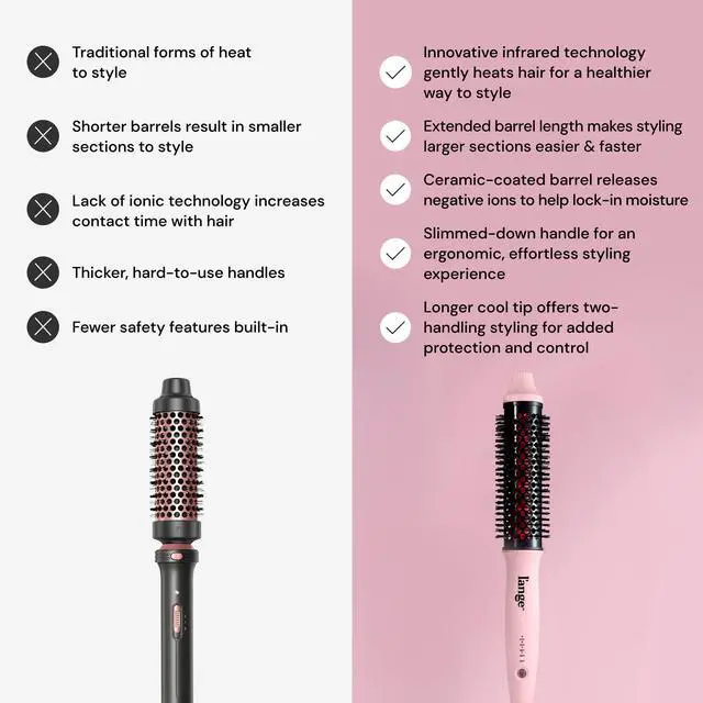 INFRARED TECHNOLOGY FOR GENTLE STYLING: The GlamWave Infrared thermal ionic brush uses infrared technology to gently heat hair from within, reducing surface damage and locking in moisture. The ceramic-coated barrel emits negative ions to combat frizz and add shine, promoting smooth, hydrated, healthy-looking strands. Designed for even heat distribution, this thermal round brush heated tool works well on all hair types, offering consistent styling with salon-like results from home.
