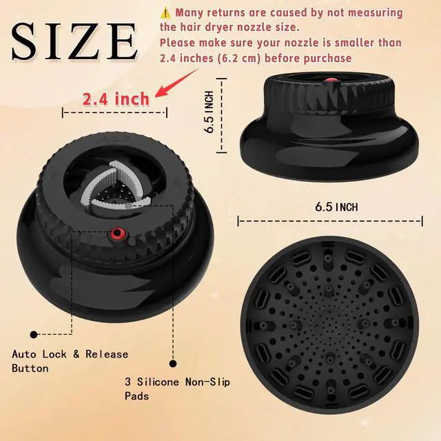 The Ligolig Diffuser hair dryer is thoughtfully designed with lock button, can be adjusted and fit 90% hair dryers on the market for hair dryer with nozzle diameter of 1.4 inch - 2.4 inch. This hair diffuser compatibilityamplify the natural beauty of your curls, giving them definition and bounce. Whether you have wavy, curly, or coiled hair, our diffuser attachment for hair dryer are the ultimate tool to achieve your desired look.