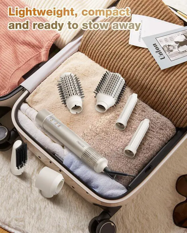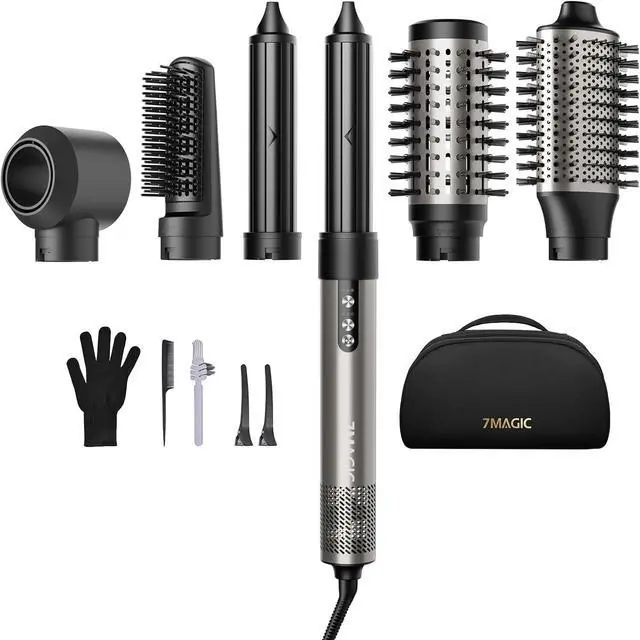6 IN 1 HAIR STYLER SET - The versatile stylers attach to the styling wand & hair dryer, giving you the power to explore styles for any hair type. This air styler includes 6 interchangeable attachments for drying, straightening, curling, and volumizing. Equipped with a 110,000 RPM high-speed brushless motor and powerful airflow up to 23 m/s, the hair dryer brush blow dryer accelerates drying, cuts styling time in half, minimizes heat exposure, and enhances shine and hair strength.