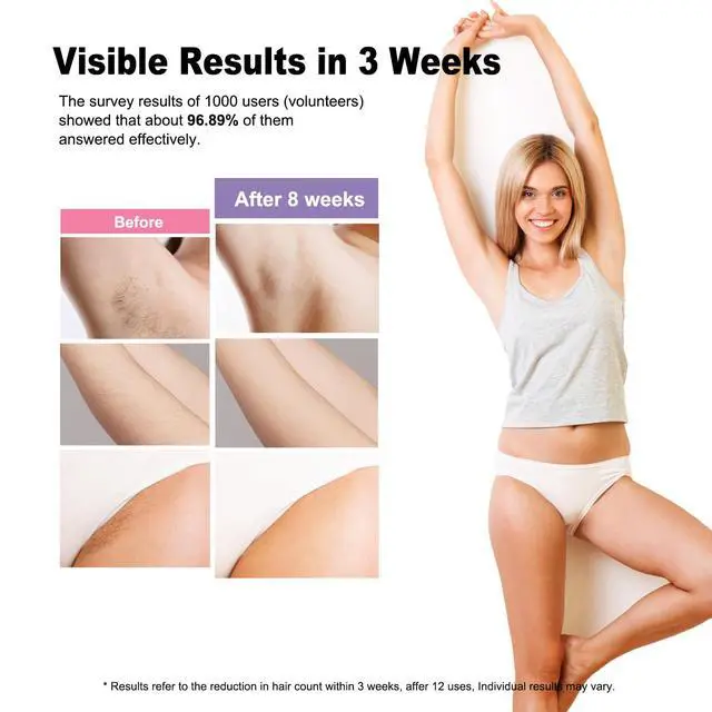 You can see results as soon as 4 weeks. The hair follicle growth cycle is greatly prolonged. After 8 to 12 weeks of continuous use of the hair removal equipment, the hair follicles are completely deactivated to the point that they no longer grow hair