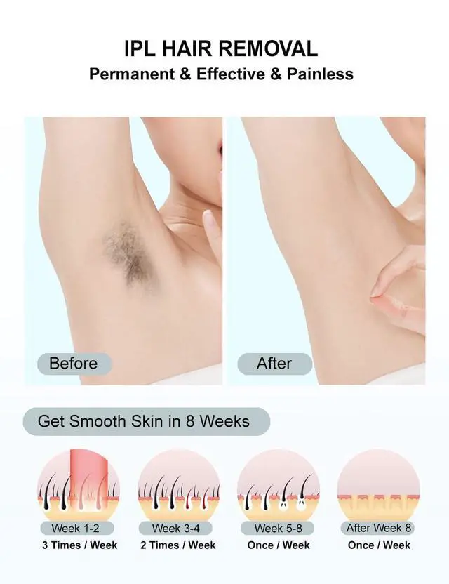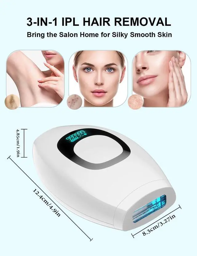 Painless Permanent Hair RemovalOur IPL laser hair removal device provides a painless and permanent solution to unwanted hair. Get salon-quality results in the comfort of your own home, without any pain or discomfort