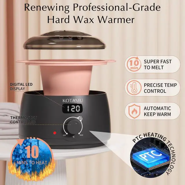 Featuring 2 circular PTC chips, the wax warmer works in a more real-world way to ensure even, consistent melting of hard waxes. The PTC (Positive Temperature Coefficient) tech embodies a self-regulating heating system, meaning it can finetune the melting process according to your room temperature.