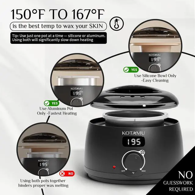 Confusing it might seem to be, this is absolutely NORMAL. The KOTAMU wax pot is designated to heat all the way up so as to FULLY melt the wax beads and later IT’LL BRING ITSELF BACK TO THE TEMP YOU SET IT TO.