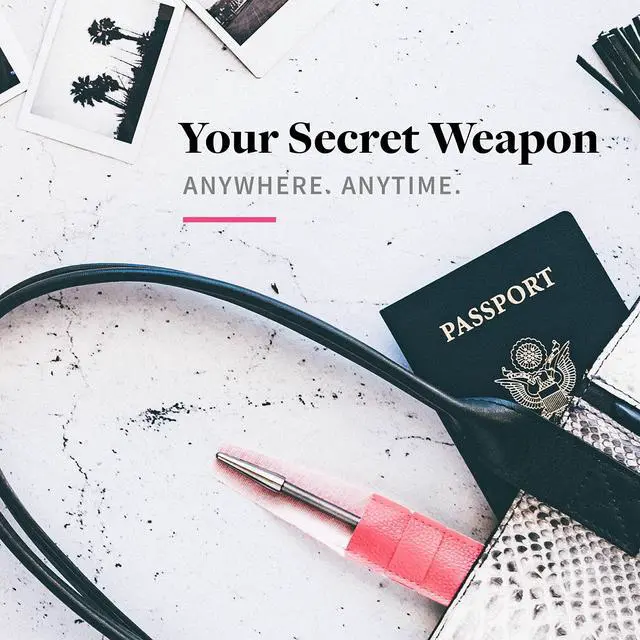 Your secret companion, anywhere, anytime. Includes a fitted white pouch for travel.
