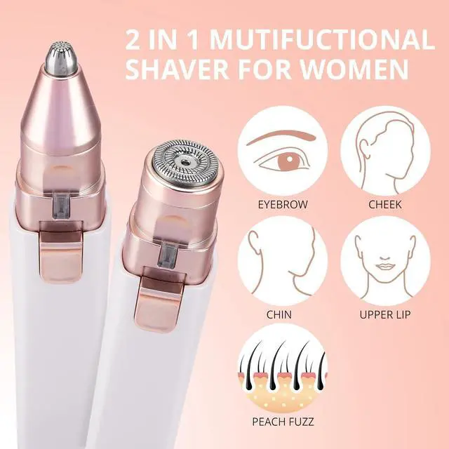 Eyebrow Facial Hair Remover for Women: Rechargeable 2 in 1 Face Shavers and Eyebrow Trimmer - Painless Electric Hair Removal Device for Face Eyebrows Lips Peach Fuzz with Light