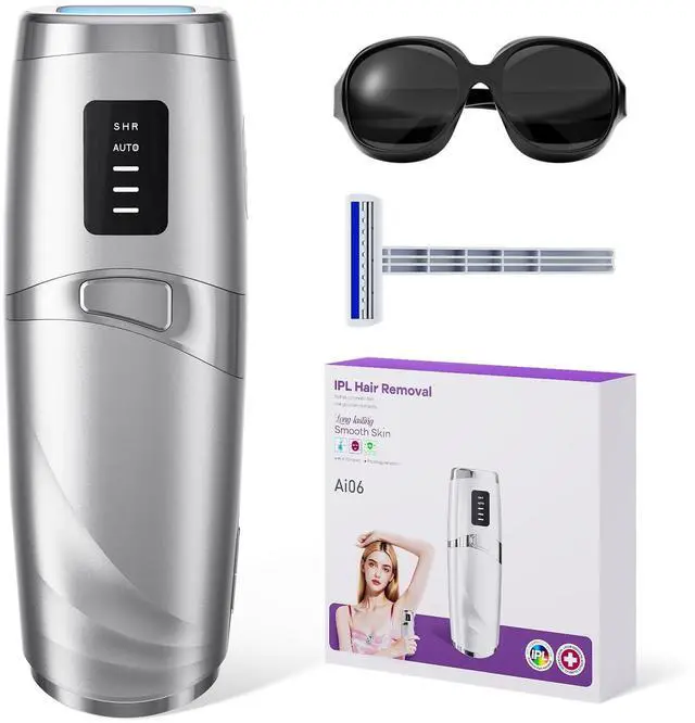 Laser Hair Removal IPL Hair Removal Device for Women & Men, 999,999 Flashes Painless Long-Lasting Results, at Home Hair Removal in 8mins for Armpits Legs Arms Bikini Line, Silver