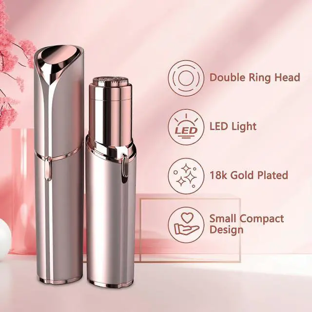 - **Precision Removal**: 18K gold-plated stainless steel blades and LED light target peach fuzz on face, lips, chin, and cheeks.