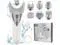 **7-in-1 Multifunctional Design**: Includes epilator, shaver, bikini trimmer, facial hair trimmer, cleaning brush, facial massager, and feet exfoliator for complete body care