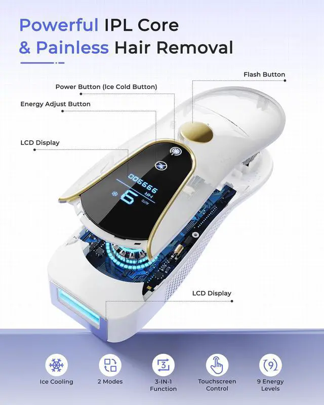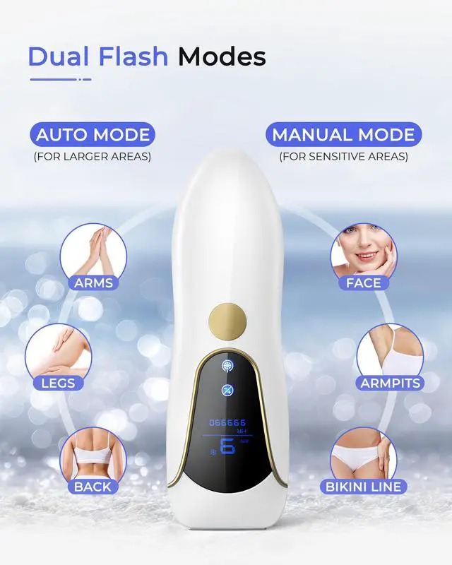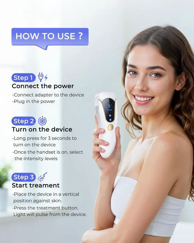 This JAYSUING's IPL hair removal uses advanced IPL technology to give you up to 12 months of smooth skin from home, with visible hair reduction in 4-8 weeks*. Individual results may vary. Dermatologically and gynecologically approved. Invest once, skip the salon, and save thousands. Box includes: 1× JAYSUING Air 15 device 1× Protective glasses 1×Smooth razor 1×Adapter(plug-in device) 1×Instruction manual