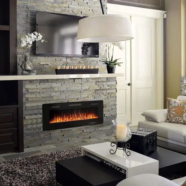 Bossin electric fireplace features a thin, pratical and light design. At 3.85 inches thickness, black linear frame,tempered glass with front air outlet., its a sleek contemporary fireplace perfectly fit for your living room,entertainment center and bedroom.