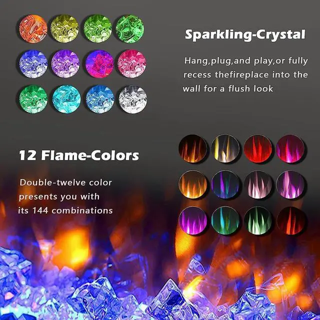 Full spectrum LED colors,12 flame & LED flame bed color modes;5 flame speed modes;5 flame brightness levels,specially automatic flame design. Come with crystal glass stone, realistic flame will offer a true-to-life fire experience.