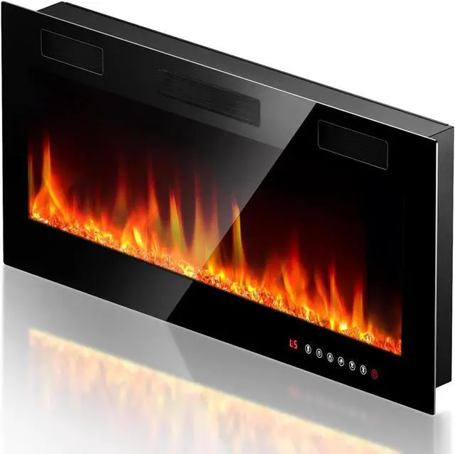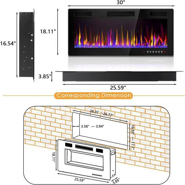 Attractive Flame:There's a button to control the flame color, and a button to control flame bed Color. 12 flame color and bed color ,5 flame speed modes and brightness levels.Simply pick up the remote control provided and choose your most comfortable settingsEnergy Savings and Space saving:750 Watts & 1500 Watts modes can be adjusted.You can choose the temperature you want. You can also make the fireplace display only the flame without heating.At only 3.2 inches thick, it is 20% thinner than other fireplaces.Stylish Decor : This fireplace not only can be Recessed or semi recessed in wall, but also can be Wall Mounted.Once wall-mounted, it doesn't take up extra space on the floor, which makes it an ideal fireplace for those short on space!Safety & Comfort: ETL Certificate Approved. It also has auto-heat kill safety to avoid superheating. Heating is good for maintaining the natural humidity in the air without drying out the room too muchLet electric fireplace warm your home and life