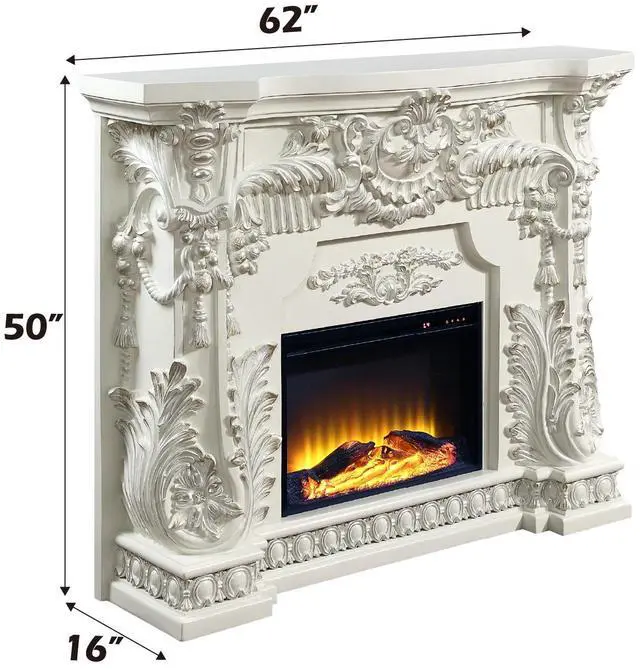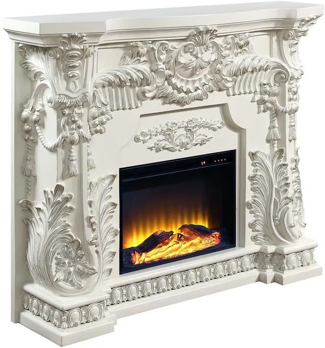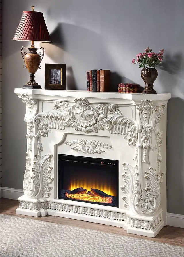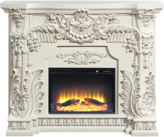 LED Electric Fireplace, Wooden Frame, Scrolled Floral, Touch Panel/Remote Controller (Batteries Required 2pc x