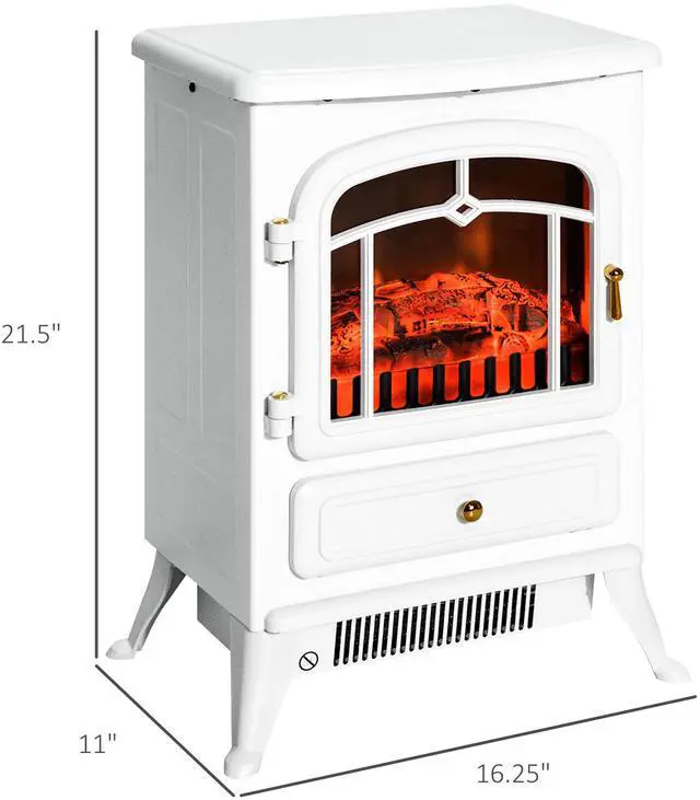22" Electric Fireplace Heater, Freestanding Fire Place Stove with Realistic LED Flames and Logs, and Overheating Protection, 750W/1500W, White