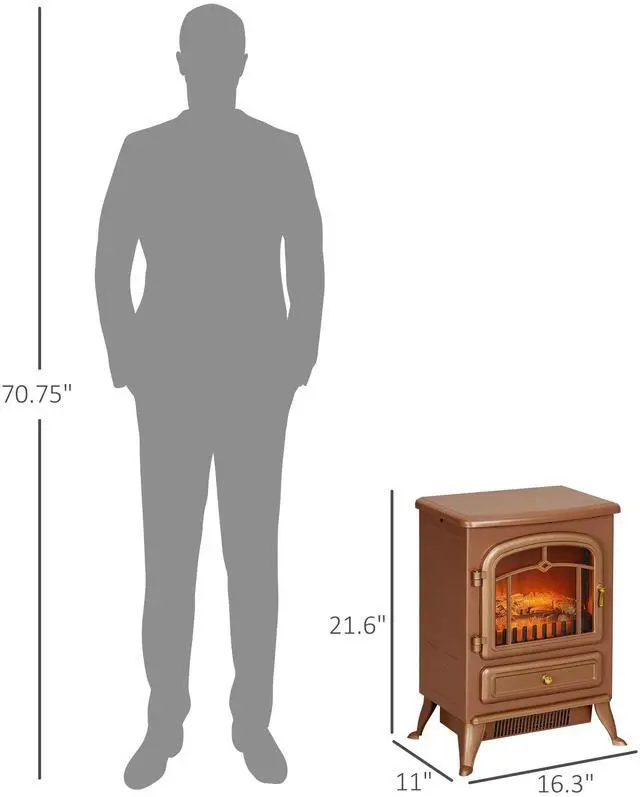 HOMCOM 22" Electric Fireplace Heater, Freestanding Fire Place Stove with Realistic LED Flames and Logs, and Overheating Protection, 750W/1500W, Dark Brown