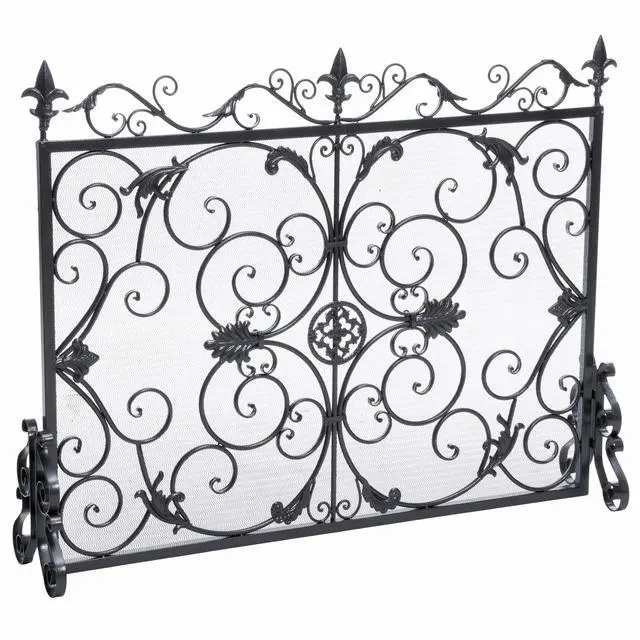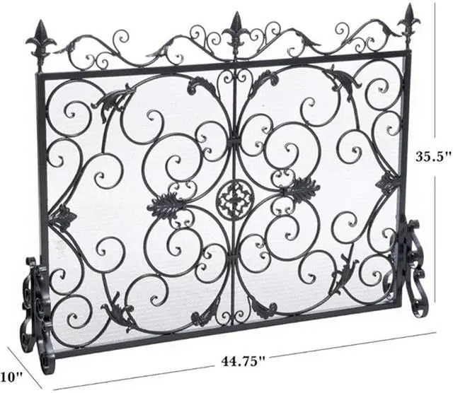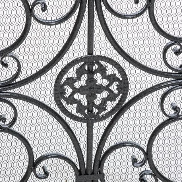 • This highly decorative fireplace screen is made with iron for durability, and the aged, powdered-coated finish gives this screen a classic appearance.